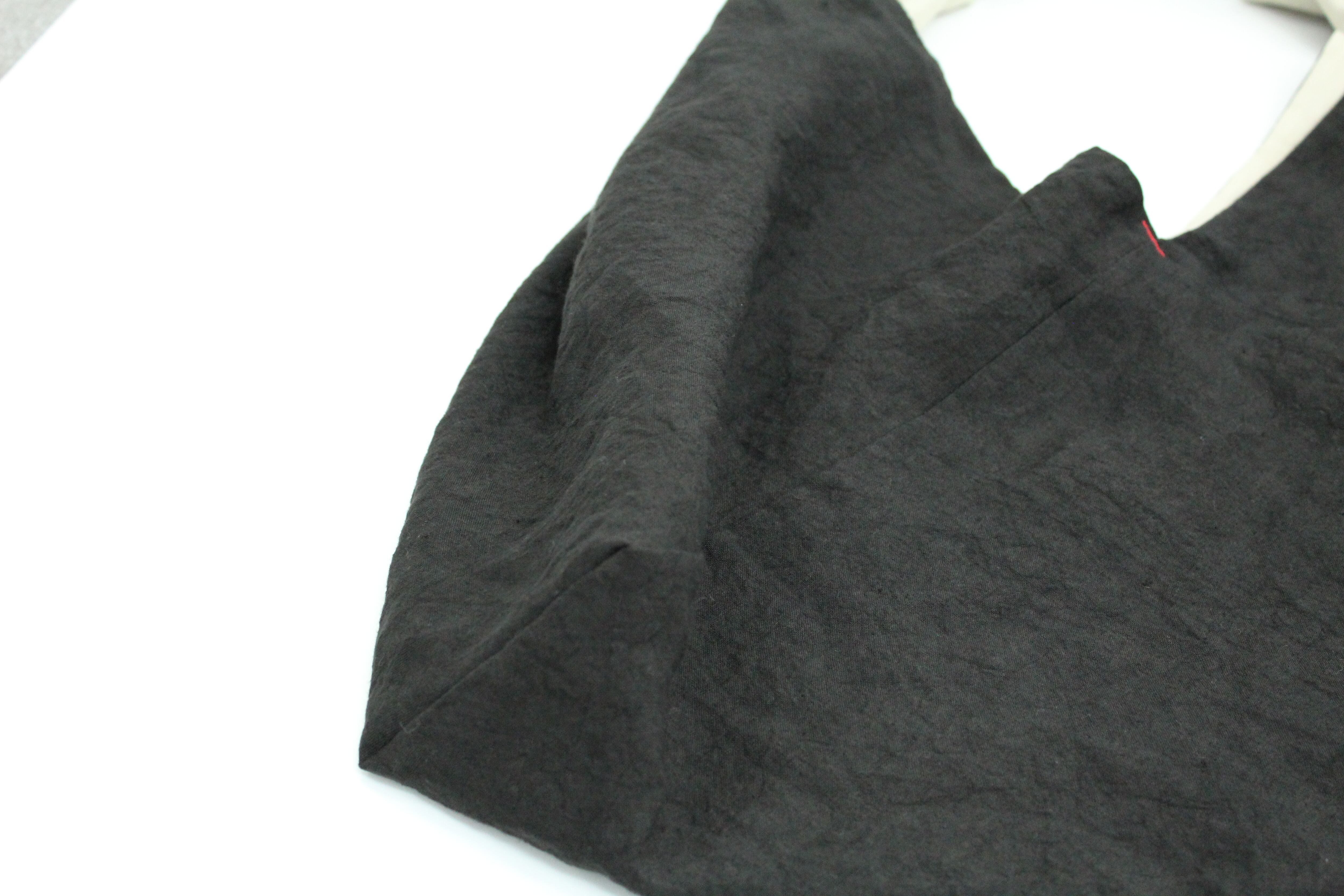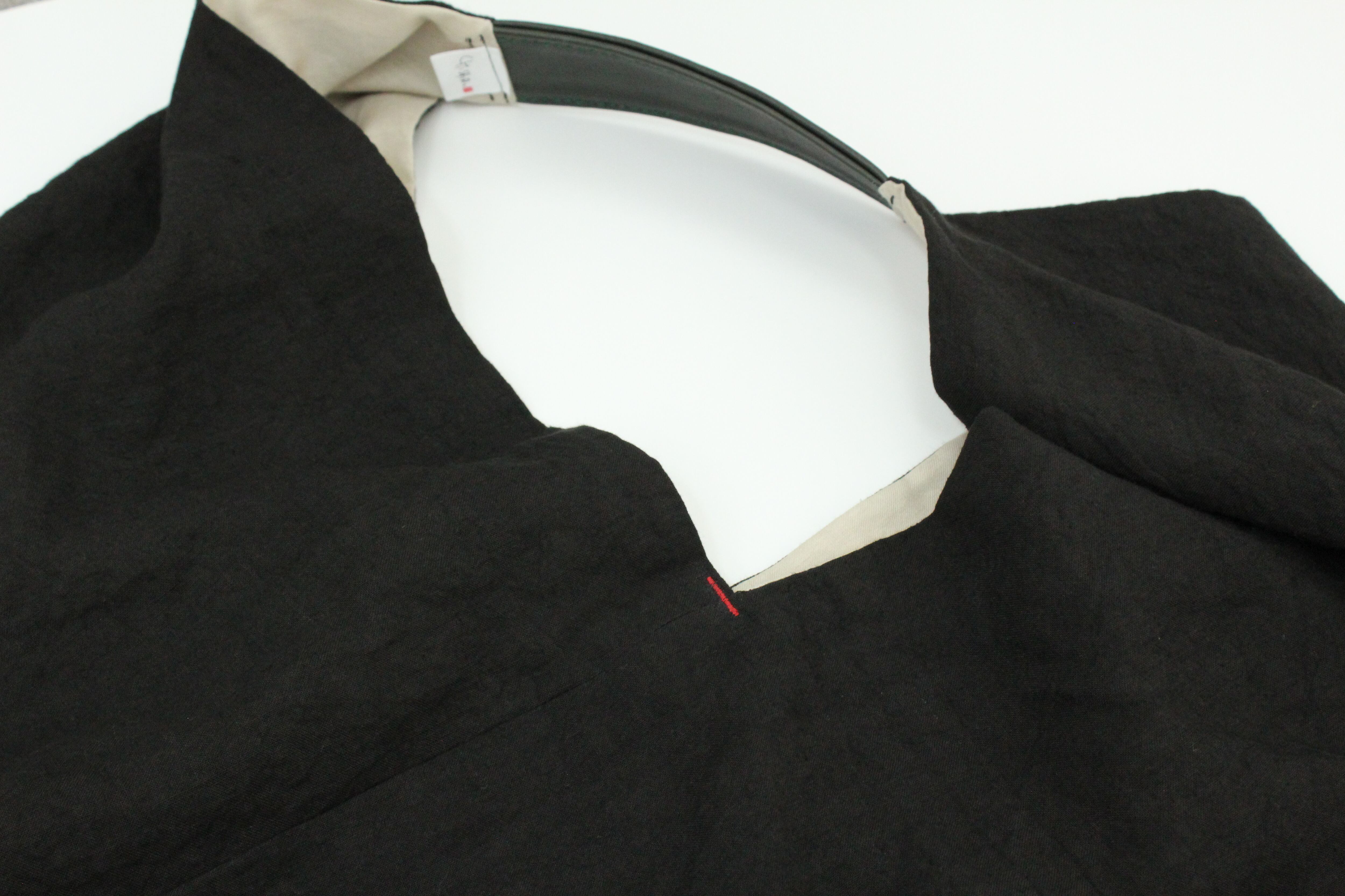 東袋をベースにしており取手部分はハンドステッチのレザーです。